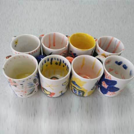 ➀ 초벌구이 된 도자기에 도자기 전용물감을 사용하여 그림을 그린 후 가마에서 재벌구이를 통해 얻을 수 있으며, 실생활에 이용할 수 있는 공예 프로그램 ➁ 체험시간: 1교시용 ➂ 체험인원: 20명이상~